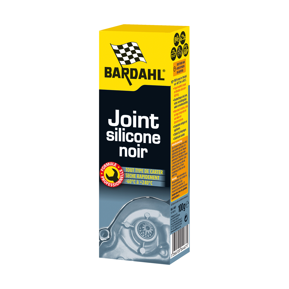 Le Joint silicone noir résiste aux vibrations et aux températures élevées des moteurs. Ce produit reste stable à l’écrasement et agit comme isolant électrique.